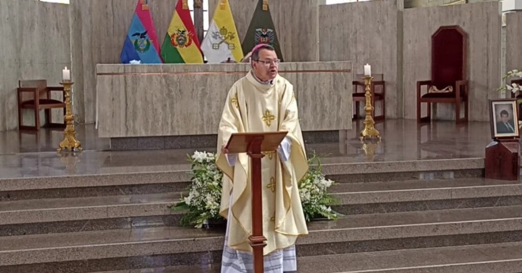 Prensa CEB 3.05.22. Mons. Fernando Bascopé, Obispo Castrense de Bolivia al celebrar la eucaristía de este domingo tercero de pascua y Jornada de la Infancia y Adolescencia Misionera, recordó el testimonio de los jóvenes que descubren con el corazón al Señor, y les agradeció por su testimonio y servicio a la Iglesia.