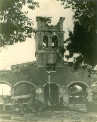 Foto: La torre del Templo parroquial despues de la destruccion ocacionada por un rayo, lo que llevo a su desaparicion definitiva en Montero.