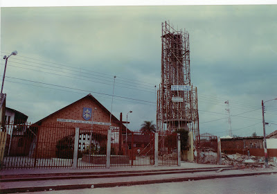 Foto: Construccion de la torre en el area del patio interno del centro pastoral.