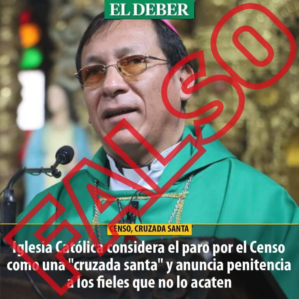 Prensa CEB 18.10.2022.- En las últimas horas circulan en las redes sociales post falsos con mensajes de obispos manifestando su posición frente a problemáticas del país, como el tema del Censo y el paro convocado por Santa Cruz.
