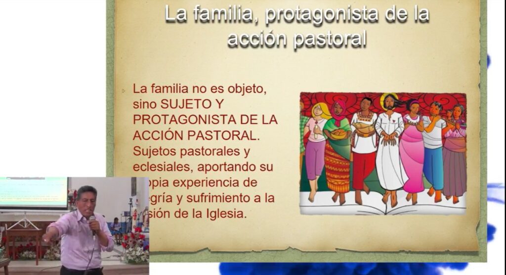 En un primer momento, Jhonny, invitó a las familias a caminar juntos como Iglesia, en sinodalidad. Para luego, exponer las problemáticas que enfrentan las familias en la sociedad actual: La migración, la economía, la salida a otras sectas, la falta de formación cristiana en los Colegios y en el núcleo familiar, las formas sutiles en que la Ideología de género se hace espacio y el aborto.