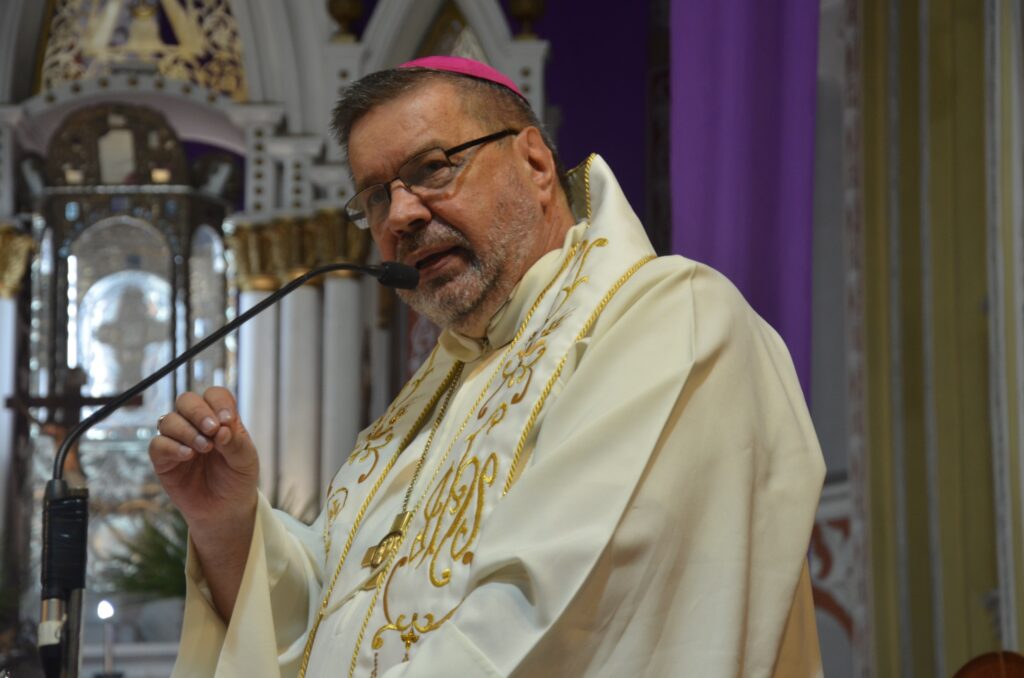 El Obispo Auxiliar de Santa Cruz, Mons. Estanislao Dowlaszewicz, alienta a todos los peregrinos que se dirigen al Santuario de la Mamita en Cotoca a caminar juntos como hermanos