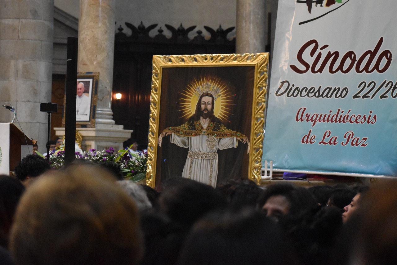 Por otro lado, el Obispo Auxiliar de la Paz, Mons. Pedro Fuentes, responsable de acompañar el caminar del Sínodo Diocesano de la Arquidiócesis de La Paz, explicó los detalles que lleva el ícono sinodal.  “El ícono contempla, al centro, la imagen conmemorativa por el centenario de consagración de Bolivia al Sagrado Corazón de Jesús, acompañado de Nuestra Señora de La Paz, a los costados se encuentran Nuestra Señora de Copacabana en homenaje del centenario de su coronación como Reina de Bolivia y la Imagen del Señor del Gran Poder. Asimismo se observa detalle como la Santísima Trinidad y la estructura icónica de la ciudad de La Paz” Indicó.