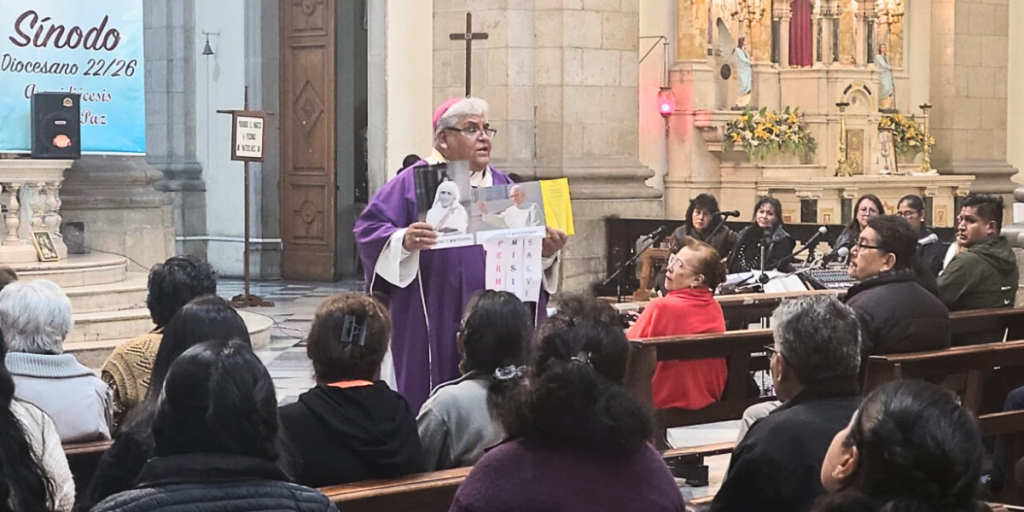 Prensa CEB 31.03.2025. Este domingo, la Catedral Metropolitana Nuestra Señora de La Paz, se cellebró la Sucaristía presidida por Monseñor Percy Galván, Arzobispo de La Paz. En su homilía, el prelado reflexionó sobre la Parábola del Hijo Pródigo (Lucas 15, 11-32) y su mensaje de misericordia, tomando como ejemplo la vida de Santa Teresa de Calcuta y las enseñanzas del Papa Francisco en su exhortación apostólica Evangelii Gaudium.