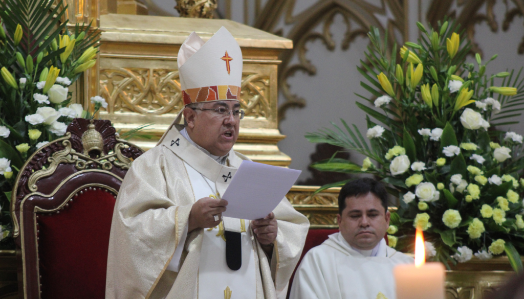 Querido Monseñor Iván, muy queridos hermanos sacerdotes, diocesanos y religiosos, diáconos permanentes, quiero saludar de una forma muy especial a nuestro último diácono transitorio, ordenado hace pocos meses, Willy, quien ha proclamado el Evangelio. A los sacerdotes estudiantes, Rambert, Juan Saniso y Pedro. Al Padre Ariel y Padre Fernando Carillo, misioneros en iglesias hermanas.