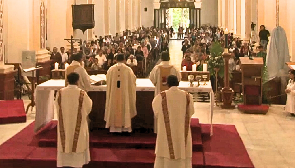 Prensa CEB 25.05.2025. Monseñor René Leigue, arzobispo de Santa Cruz celebró la Eucaristía de este domingo desde la Catedral San Lorenzo Mártir, en su homilía dirigió un mensaje de aliento y reflexión a los fieles, instando a vivir con fidelidad la palabra de Dios y a no perder la esperanza en medio de las dificultades actuales que atraviesa la sociedad boliviana.