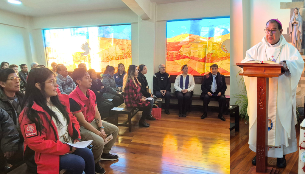 Prensa CEB 23.05.2025 La Misa Mensual del mes de mayo, estuvo a cargo del Área de Evangelización, fue presidida por Mons. Luis Durán y concelebrada por Mons. Pedro Fuentes, CP contó con la participación de todos los Colaboradores de Áreas, Comisiones, Oficina de la Conferencia Episcopal Boliviana.