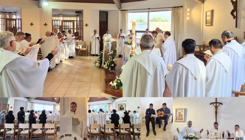 Prensa CEB 06.05.2025 La última jornada de la XCVI Asamblea Obispos a iniciado el día de hoy con una Eucaristía que fue presida por Mons. Renan Aguilera, Obispo de la Diócesis de Potosí. El Prelado durante su homilía dijo: No tenemos nada más para darle a nuestra gente, a nuestro pueblo, que es Jesús de Nazaret, el verdadero pan de vida.