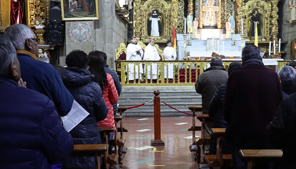 Prensa CEB 1.06.2025. Este domingo, fiesta de la Asunción del Señor, Mons. Luis Durán, obispo auxiliar de la Arquidiócesis de La Paz, celebró la Eucaristía desde la Basílica Menor de San Francisco en La Paz, oportunidad en la que animó a construir el Reino de Dios entre nosotros, con actitudes de amor, caridad y fe, anunciando la Palabra y dejándonos guiar por la sabiduría de Dios.