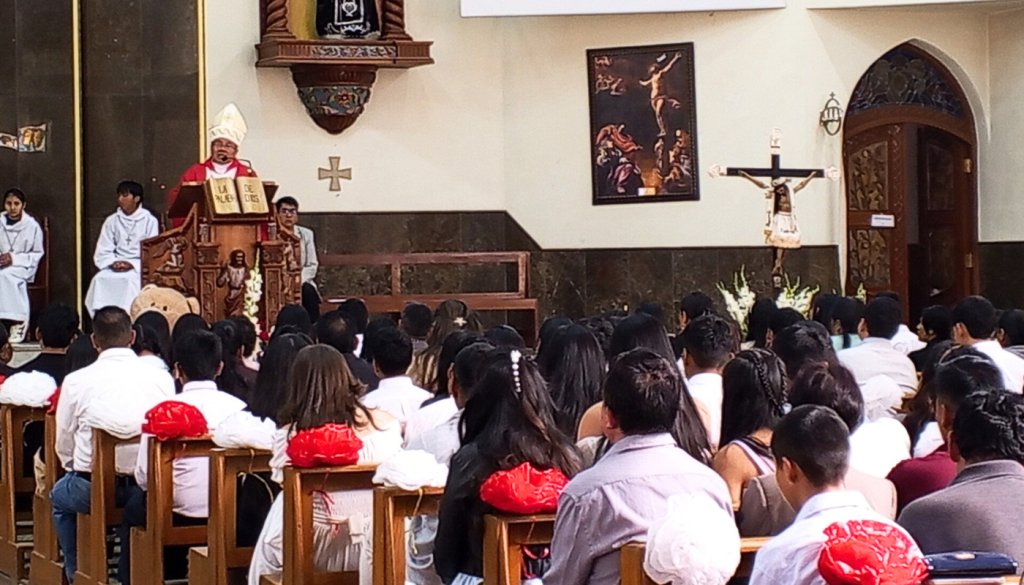 Prensa CEB 9.06.2025. En la homilía de Pentecostés, Mons. Jorge Herbas, obispo de la Prelatura de Aiquile, destacó la alegría que representa la celebración de las confirmaciones, subrayando cómo este sacramento rejuvenece a la Iglesia y llena de vitalidad a la comunidad parroquial. Invitó a los jóvenes confirmandos a ser coherentes con la fe que profesan y a vivirla con compromiso, especialmente en el contexto de la situación crítica que atraviesa el país. Mons. Herbas recordó la naturaleza del Espíritu Santo como fuerza santificadora y cohesionadora, que impulsa a los cristianos a buscar la santidad y a actuar según el querer de Dios.