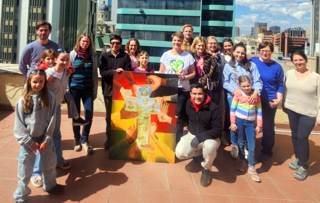 La delegación conforamda por la Directora, profesoras, padres de familia y niños del Colegio Bonifacio, llegarona a Bolivia en el viaje de amistad para celebrar las bodas de plata de una amistad basa en el amor a Cristo a través de la Educación donde tienen envuentros virutales, intercambio de experiencias educativas y han apoyado en la refacción del Colegio Las Lomas.