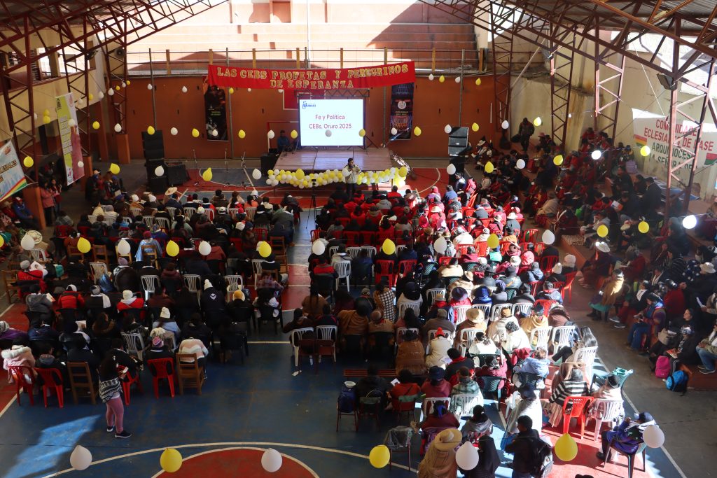 Prensa CEB 11.07.2025 La Diócesis de Oruro es la anfitriona del XIV Encuentro Nacional de las Comunidades Eclesiales de Base, donde están reunidos más de cuatrocientos delegados de todo Bolivia, en la segunda jornada del viernes 11 de julio, que fue guiada por la Fundación Jubileo, respondiendo al Objetivo Específico: Analizar nuestra acción política en el contexto presente, desde el Evangelio.