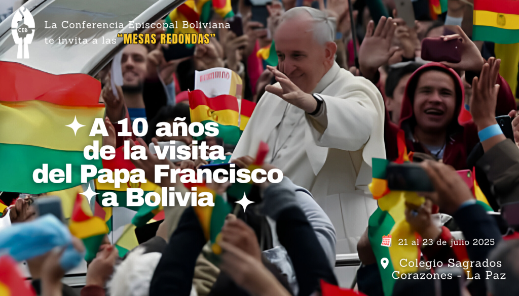 Prensa CEB 18.07.2025. En el marco del décimo aniversario de la histórica visita del Papa Francisco a Bolivia, la Conferencia Episcopal Boliviana invita a la población a participar en una serie de “Mesas Redondas” que se llevarán a cabo los días 21, 22 y 23 de julio en el Colegio Sagrados Corazones, en la ciudad de La Paz.