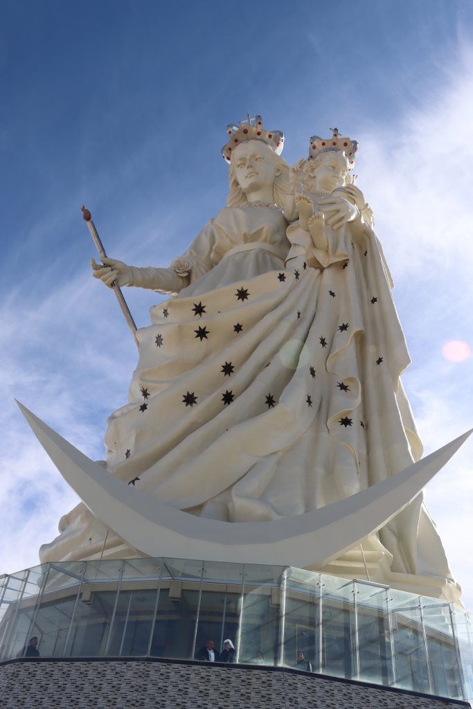 Prensa CEB 02.07.2025 Oruro tierra de fe y devoción a la Virgen María en la advocación de la Virgen del Socavón, que tiene una estatua gigante en el cerro donde se observa la ciudad, el Clero Diocesano de Oruro organizó la visita para que los sacerdotes visiten el lugar emblemático. En el interior se encuentra una capilla y en los diferentes pisos se encuentra la historia de la religosidad popular que va ligada a las diferentes danzas que se presentan en Carnaval y donde los danzarines hacen una promesa bailando hasta los pies de la imagen de la Virgen del Socavón.