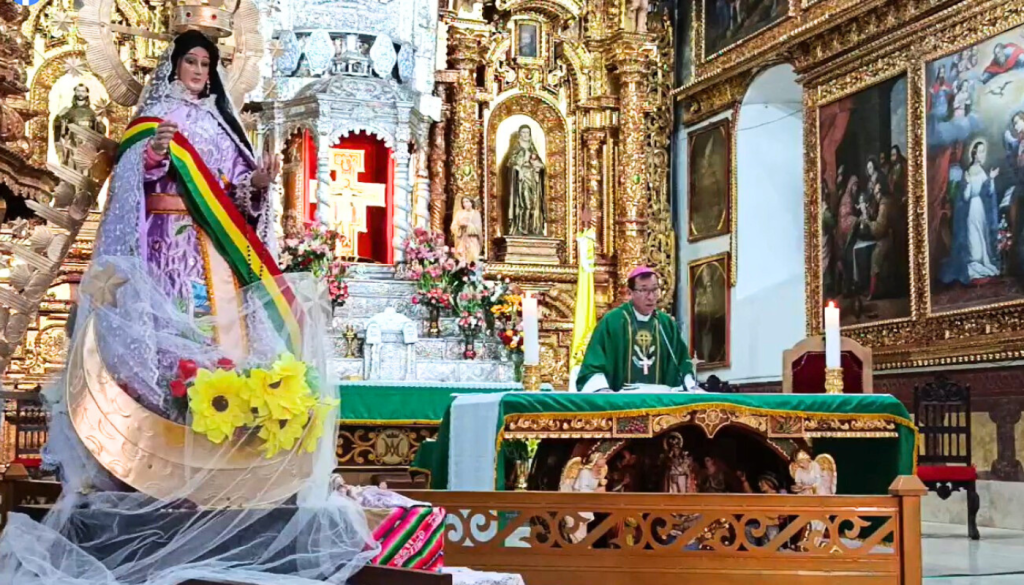 Mons. Fuentes recordó los 200 años de independencia de Bolivia y los 100 años de la coronación de la Virgen de Copacabana, resaltando la importancia espiritual de este Santuario para el pueblo boliviano, motivo por el que sugirió sea la sede de este encuentro nacional que hoy reúne a 295 educadores de todas las jurisdicciones del país.
