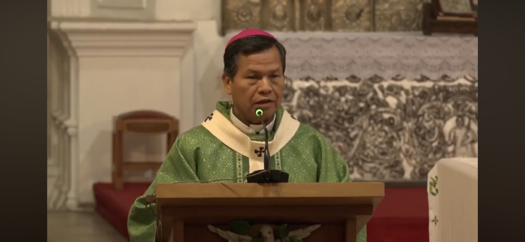 Monseñor René concluye con una oración a Nuestra Señora del Socavón, pidiendo su protección maternal sobre la nación boliviana, y con un llamado a la unidad, la oración y el testimonio cristiano auténtico.