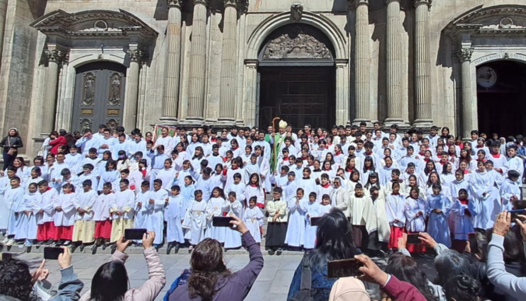 Prensa CEB 11.08.2025. La mañana del domingo 10 de agosto dia en que se recuerda a San Lorenzo, a las 10:30am, la Catedral Metropolitana de La Paz se llenó de alegría, fe y juventud para celebrar una eucaristía muy especial presidida por el arzobispo, Mons. Percy Galván Flores. La ocasión reunió a numerosos monaguillos de diversas parroquias, de nuestra Iglesia Paceña, convocados para vivir el Jubileo de los Servidores del Altar en honor a su santo patrono, así como para compartir con su pastor el regalo de su cumpleaños.