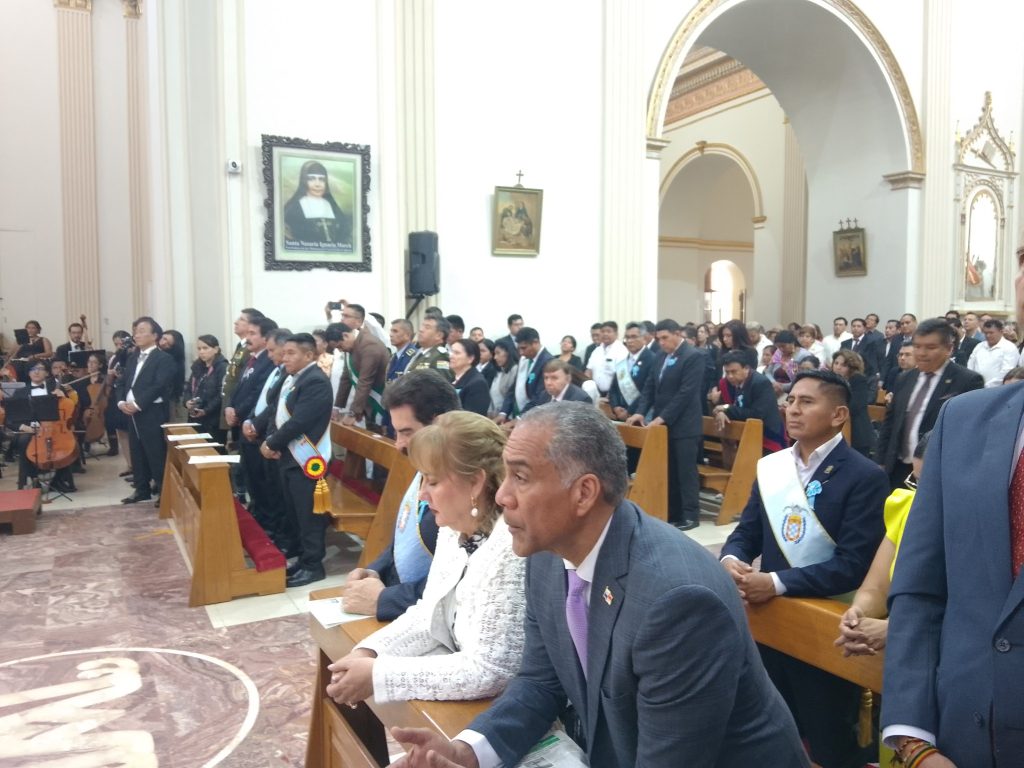 A las 10:00 de la mañana inicio la Misa de Tedeum por el 215 aniversario del Departamento de Cochabamba, en la catedral San Sebastián. Acto litúrgico donde participaron las principales autoridades civiles del Departamento