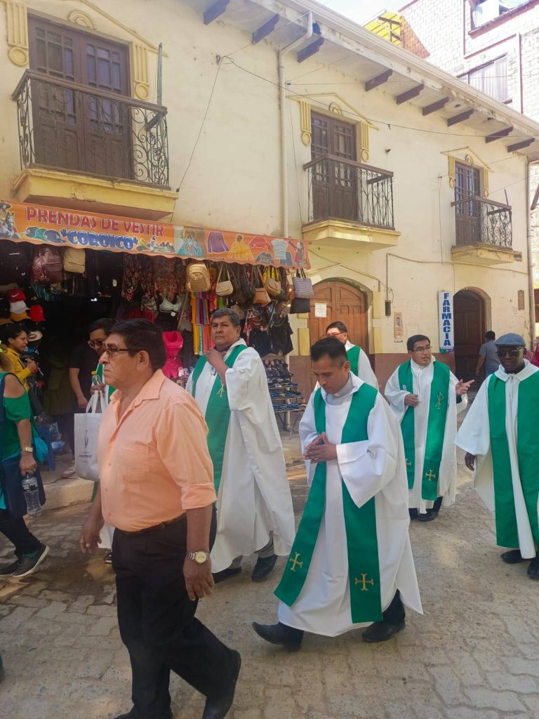 El encuentro y jubileo de catequistas de la Diócesis de Coroico, realizaron la peregrinación y el paso de la puerta Santa para participar de la Santa Misa en la Catedral San Pedro y San Pablo de Coroico que fue presidida por Mons. Juan Vargas Obispo Emérito de la Diócesis de Coroico y la concelebraron sacerdotes junto a la feligresía de la parroquia.