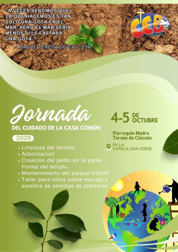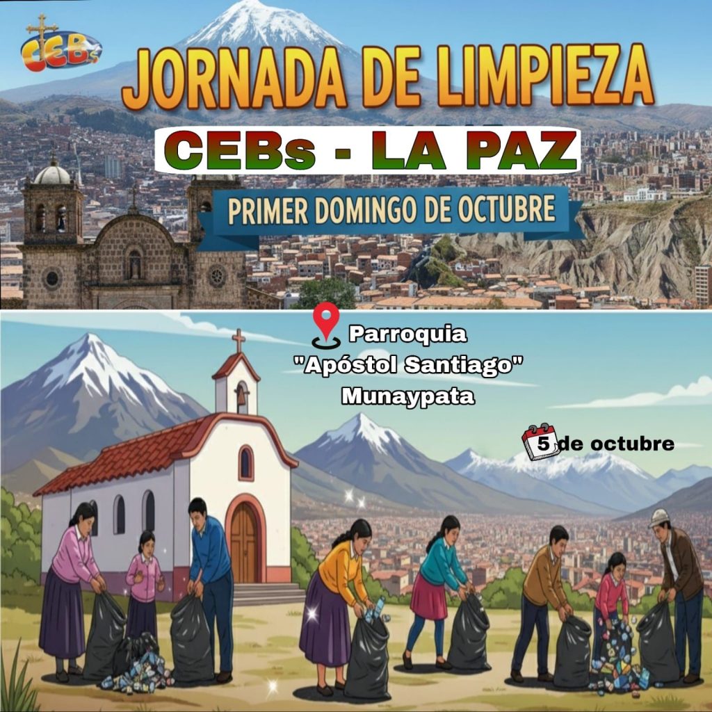 Prensa CEB 01.10.2025 Las Comunidades Eclesiales de Base de Bolivia, con el objetivo de poner en práctica las reflexiones que tuvimos en el encuentro nacional de las CEB´s, referente los temas de la ecología integral y los desafíos, es una fecha que se quiere institucionalizar es EL 1 ° domingo de octubre, unificando tareas para el cuidado del medio ambiente, manejo responsable de la basura, reciclaje y otros.