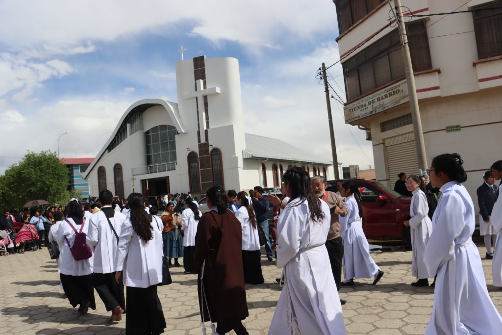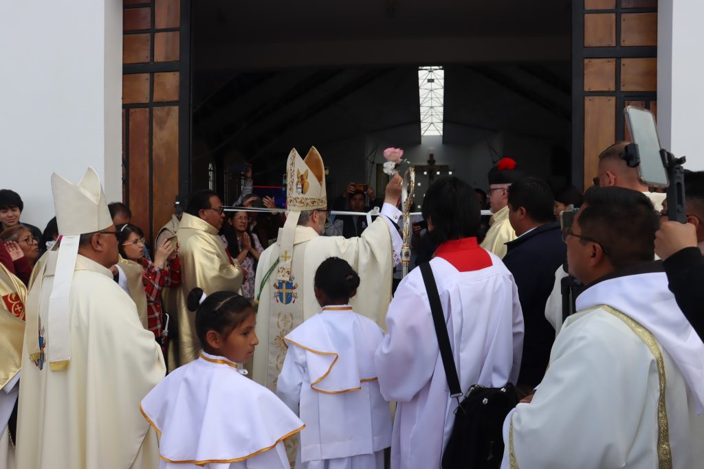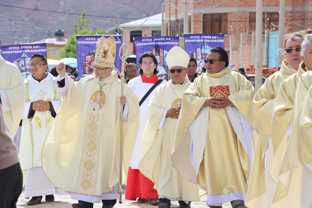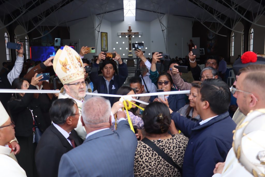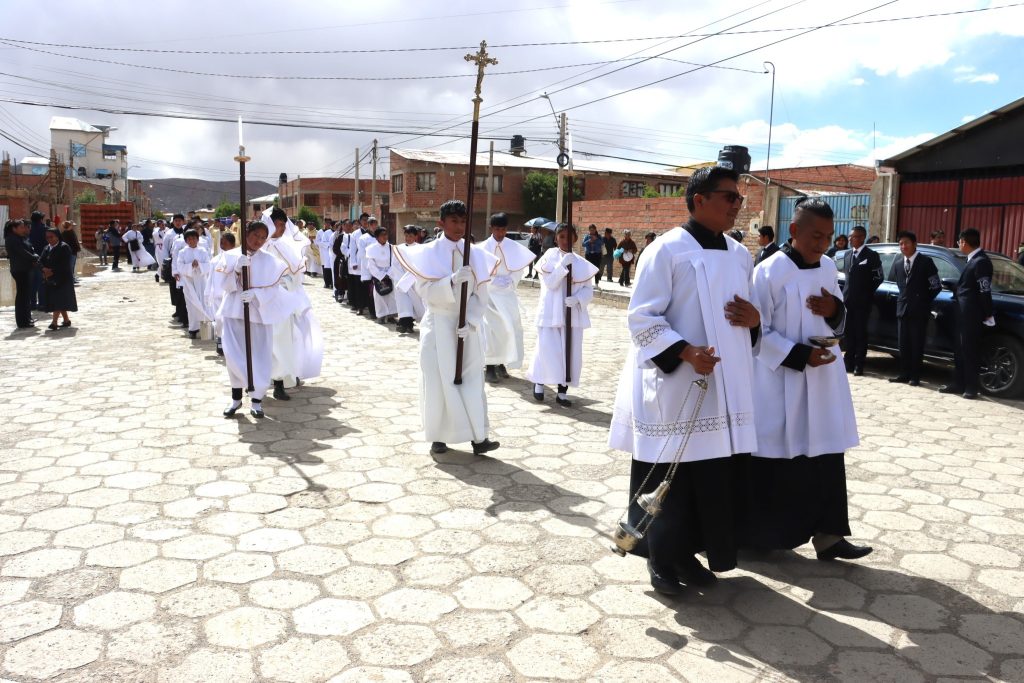 La ceremonia inició con la procesión desde el Colegio Magdalena II, en la que la multitud, entre cantos y oraciones, se trasladó hasta el nuevo templo para participar de la Misa de Dedicación y la proclamación de San Juan Pablo II como patrono secundario de la diócesis. Durante la ceremonia, Monseñor Bialasik resaltó el profundo significado espiritual de contar con una nueva Casa de Oración, destinada a ser signo de fe, unidad y esperanza para toda la región, y recordó el encuentro histórico de San Juan Pablo II con los mineros y campesinos orureños en el Campus Papal hace 37 años.