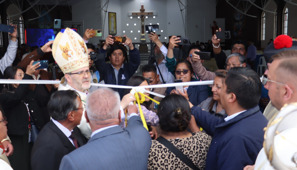 Prensa CEB 29.10.2025. La comunidad católica de Oruro vivió una jornada llena de fe y esperanza con la Consagración de la nueva Iglesia San Juan Pablo II, en el sector de Pedro Ferrari. La solemne celebración fue presidida por Monseñor Cristóbal Bialasik, S.V.D., Obispo de la Diócesis de Oruro, y concelebrada por Monseñor Pascual Limachi, Obispo de la Prelatura de Corocoro, con la presencia de sacerdotes, religiosas, laicos y representantes de comunidades parroquiales, instituciones educativas y movimientos apostólicos que colmaron el templo.