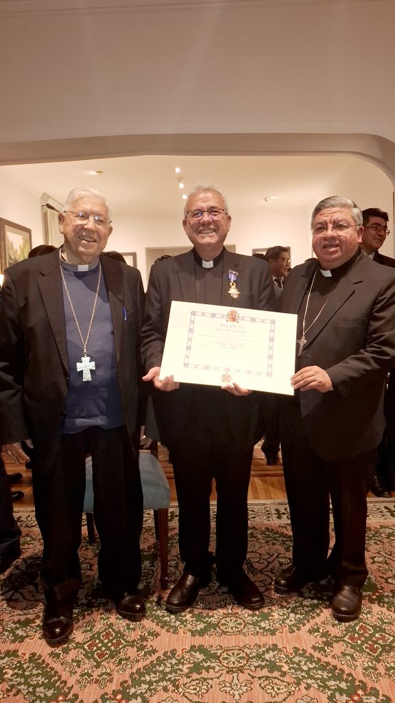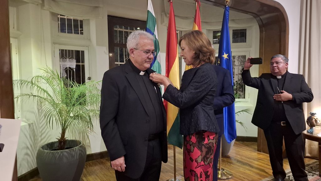 “Esta condecoración la agradezco a los que me la otorgan, pero realmente siento que es de todos ustedes y de algunos que no están hoy aquí. Va por ustedes y por ellos. Gracias por acompañar mi vida y por contribuir a que Bolivia y España sean más lo que tienen que ser: dos países hermanos”, finalizó el P. Fuentes Cano.