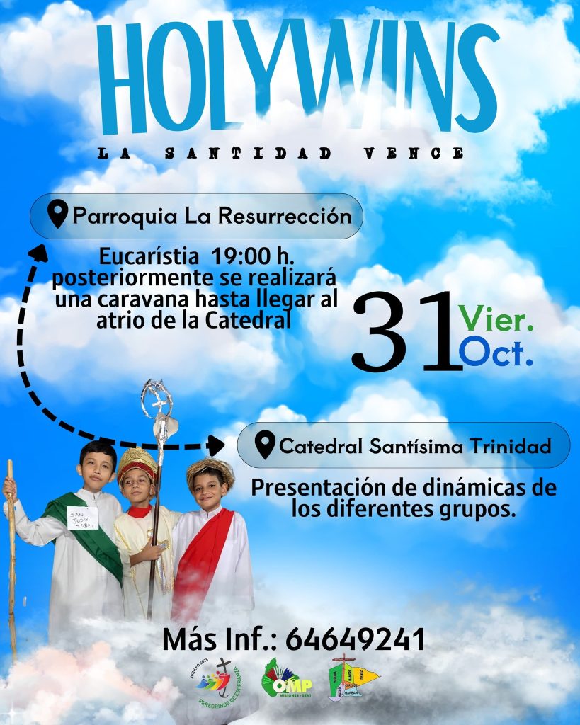 Prensa CEB 29.10.2025. El Vicariato Apostólico del Beni anima a toda la comunidad a sumarse a la celebración de “Holywins”, una iniciativa que resalta la alegría, la vida y el llamado universal a la santidad. El evento, cuyo nombre significa “La Santidad Vence”, invita especialmente a niños y jóvenes a vestir atuendos de santos, ángeles u otros personajes de vida ejemplar, recordándonos que la santidad es una meta posible para todos.