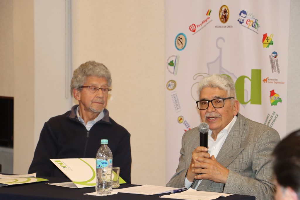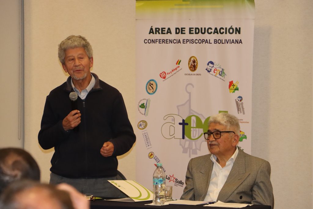 En su alocución el secretario general Adjunto de la Conferencia Episcopal Boliviana, P. Diego Plá Aranda, agradeció al Área de Educación por la iniciativa en el Año Jubilar por reunir a los directores, profesores, alumnos en el Simposio, que fue encabezado por el secretario ejecutivo del Área de Educación Jorge Fernández los Colaboradores con el apoyo de los pasantes de la UMSA y de la UCB.