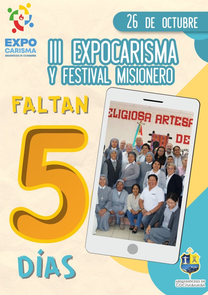Prensa CEB 21.10.2025. La Arquidiócesis de Cochabamba se prepara para vivir una verdadera fiesta de fe, alegría y compromiso evangelizador con la realización de la Expo Carisma y Festival Misionero 2025, que se llevará a cabo el domingo 26 de octubre a partir de las 9:00 de la mañana en la Plaza de las Banderas.