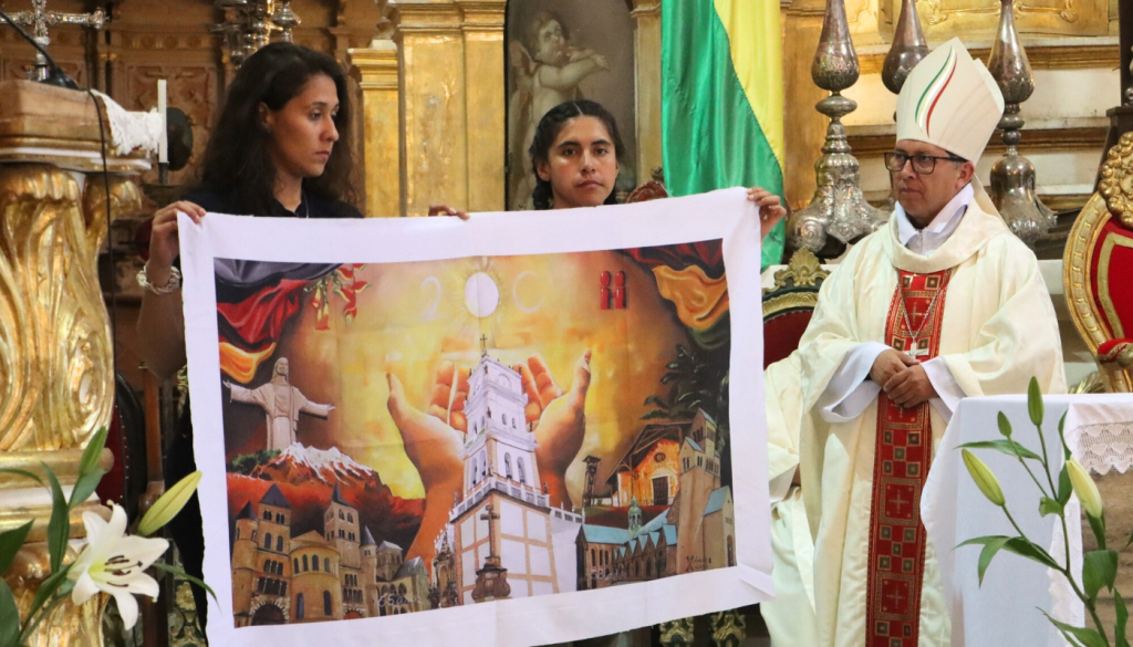 La Semana de Hermandad finalizó con la presentación de un cuadro que simboliza unión de la Iglesia boliviana y las diócesis de Hildesheim y Tréveris en Alemania