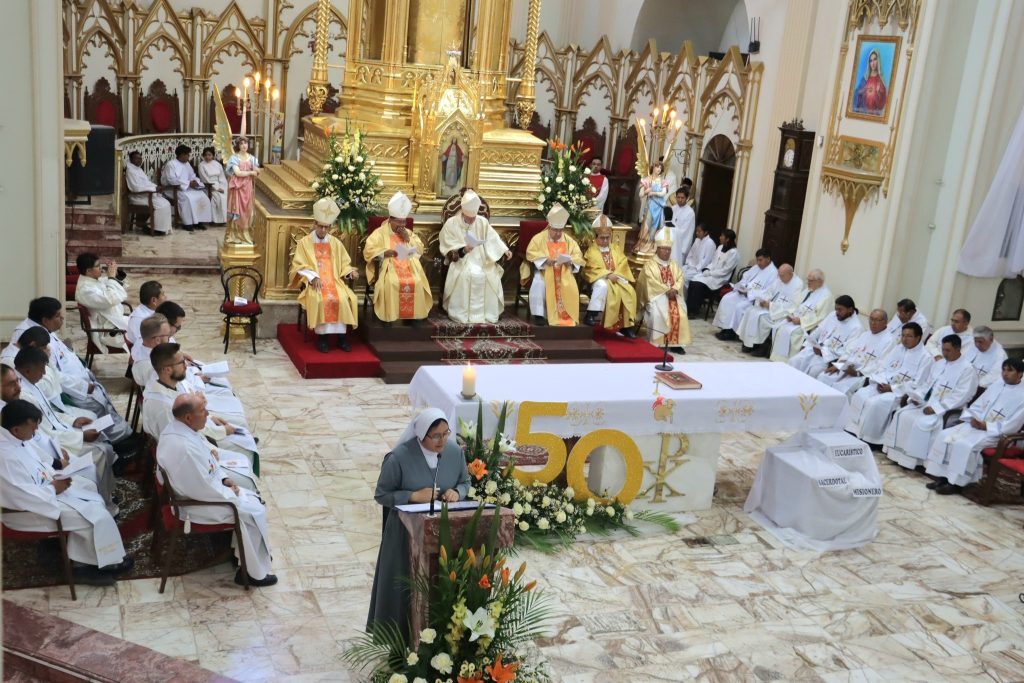 Prensa CEB 21.11.2025. Las Misioneras de Jesús Eterno Sacerdote (MJES) celebraron su 50 aniversario de presencia en Bolivia con una emotiva misa de vísperas en la Prelatura de Corocoro. Este evento reunió a delegaciones religiosas internacionales, especialmente de Perú y Uruguay, reflejando medio siglo de compromiso pastoral y misión evangelizadora.