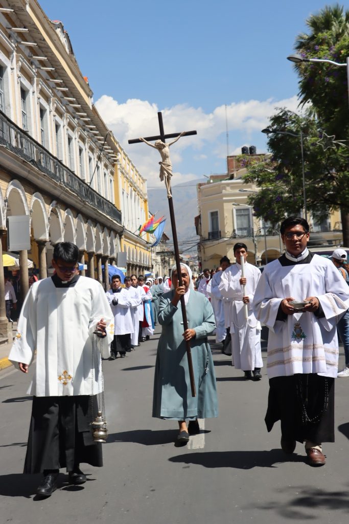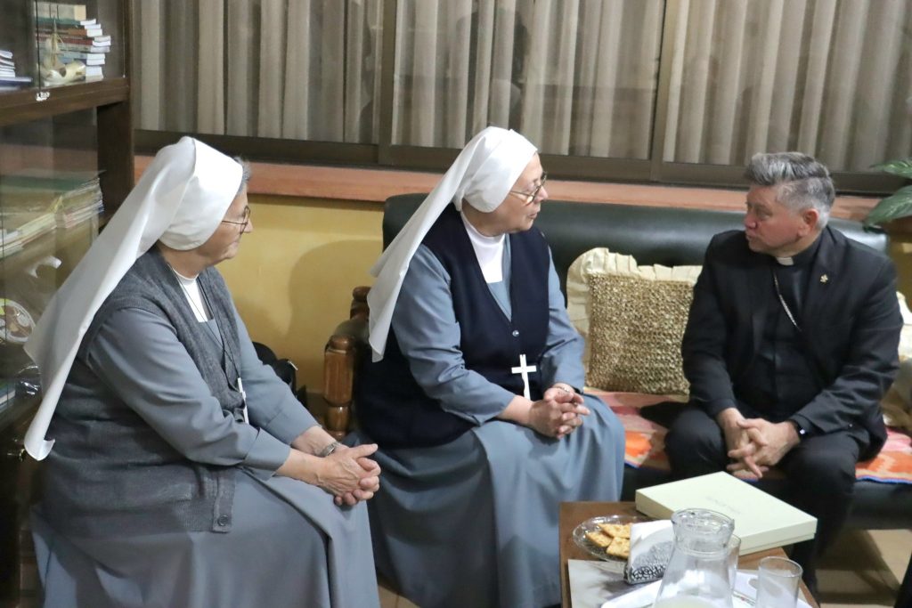 Por otro lado, en la Catedral San Sebastián de Cochabamba, se realizó la misa central este jueves a las 10:00, presidida por S.E.R. Mons. Fermín Emilio Sosa Rodríguez, Nuncio Apostólico en Bolivia, quien también saludó personalmente a las hermanas en un encuentro fraterno donde intercambiaron reconocimientos y presentes.