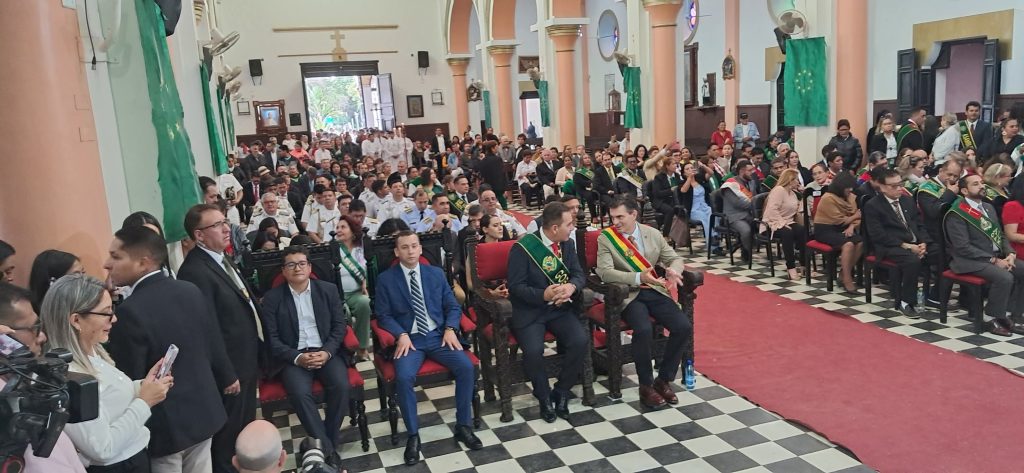 Durante su homilía, Mons. Pesoa dirigió un saludo especial al presidente Rodrigo Paz Pereira, destacando su presencia tras más de 20 años para acompañar esta celebración y acción de gracias. También reconoció la presencia de representantes del Tribunal Supremo de Justicia, el Tribunal Constitucional y el Tribunal Agroambiental, así como a funcionarios y representantes del poder legislativo y municipal del departamento.