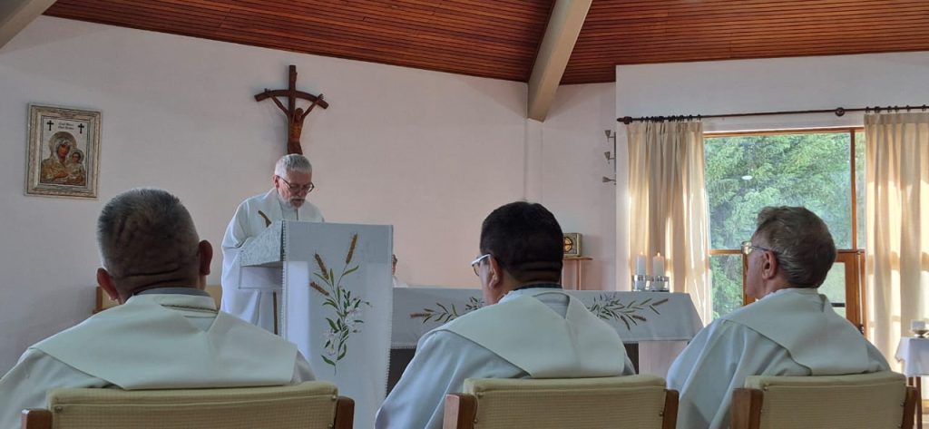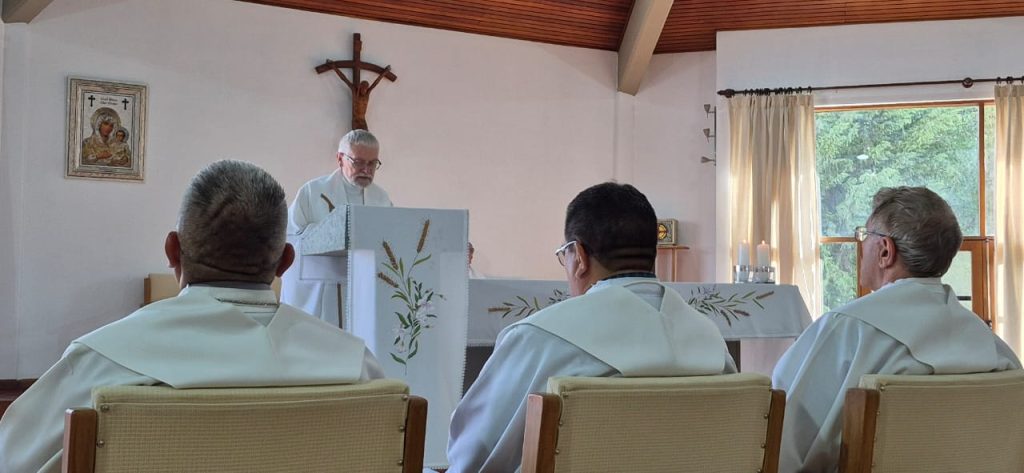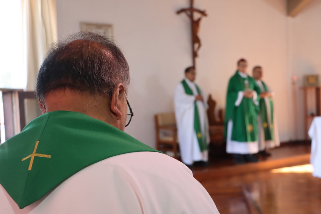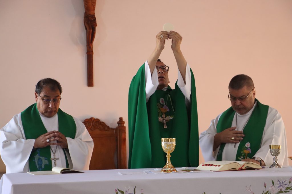 La mañana del martes 4 de noviembre celebró la Eucaristía Mons. Adolfo Bittschi, obispo auxiliar de la Arquidiócesis de Sucre, en su homilía sostuvo que Jesús nos enseña que ser discípulos, y esto implica renunciar a todo: amarlo más, cargar con sufrimiento, y renunciar a las posesiones para seguirlo. Cargar con la cruz significa aceptar un camino de sacrificio, soledad. Muchos hombres, mujeres, jóvenes y niños dan testimonio al entregar su vida renunciando a una familia propia para servir con corazón generoso, expresó. En la oportunidad el Obispo pidió a los fieles con quienes comparte su reflexión diaria orar por este encuentro de los Pastores de la Iglesia Católica en Bolivia.