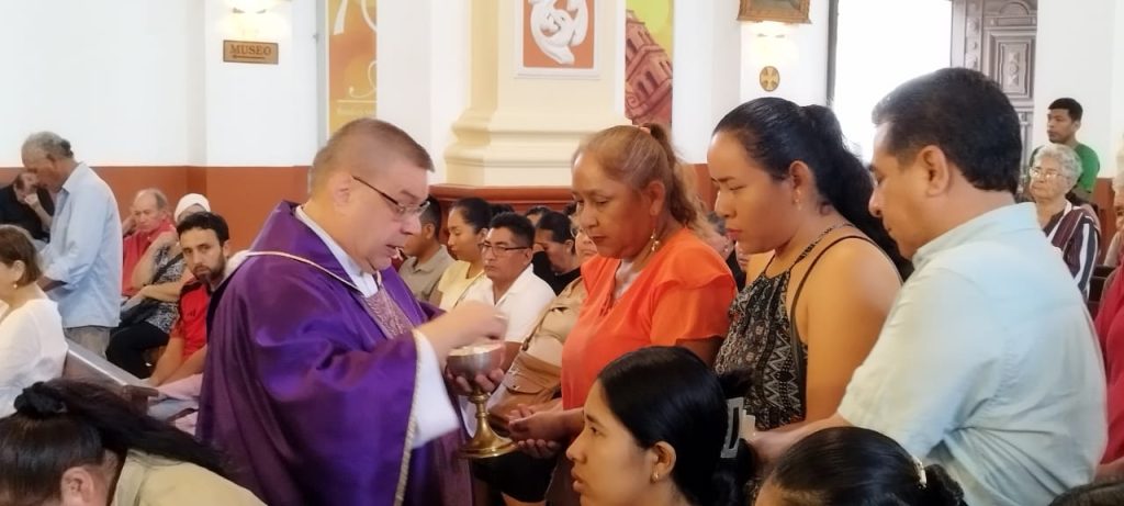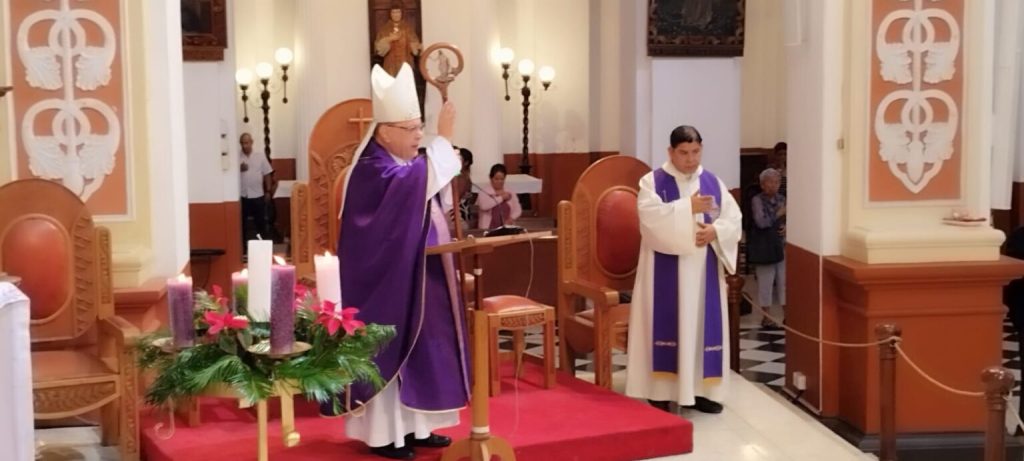 Prensa CEB 21.12.2025 En Santa Cruz la misa del IV domingo de adviento fue presidida por el Obispo Auxiliar de la Arquidiócesis de Santa Cruz, Mons. Stanislaw Dowlaszewicz, O.F.M. Conv., en la Catedral Metropolitana Basílica Menor San Lorenzo, con la participación de los feligreses que llegan de los distintos barrios de la capital cruceña.