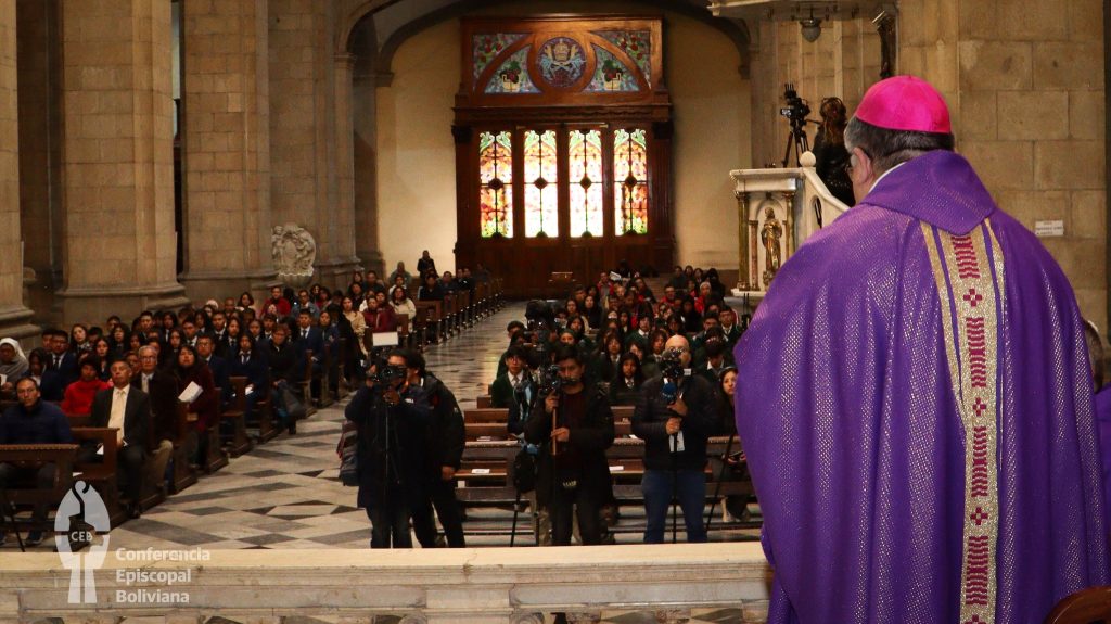 Prensa CEB 18.02.2026. Monseñor Giovani Arana, obispo de la Diócesis de El Alto y secretario general de la Conferencia Episcopal Boliviana, presidió la Eucaristía del Miércoles de Ceniza en la Catedral Metropolitana de La Paz, con la presencia de colaboradores de la CEB, estudiantes de colegios privados y medios de comunicación. En la celebración, marcada por la imposición de cenizas, invitó a los fieles a vivir la Cuaresma como un tiempo de gracia y de conversión verdadera.