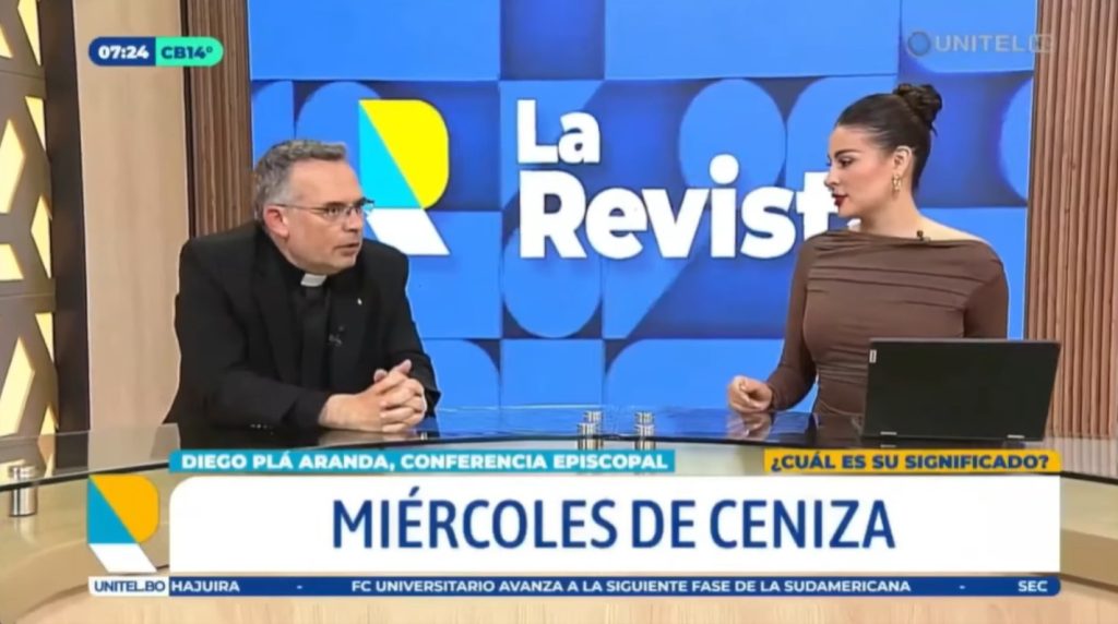 Prensa CEB 5.03.2025. En este Miércoles de Ceniza, el Padre Diego Plá, secretario general adjunto de la Conferencia Episcopal Boliviana, nos brinda una reflexión sobre el significado de esta fecha tan importante para los cristianos, un tiempo para la renovación interior, la conversión y la reflexión personal, así lo manifestó en el programa “La Revista” de la cadena nacional de Unitel.